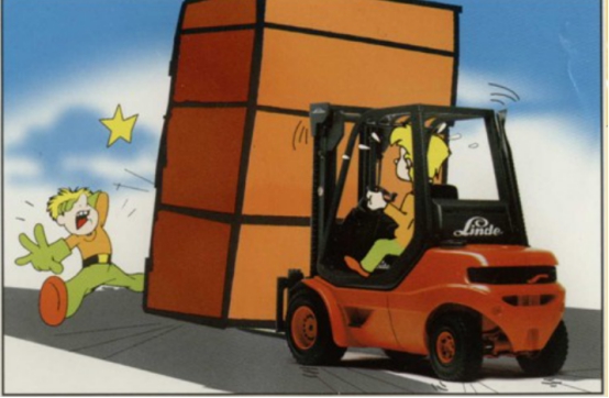 可能會出現(xiàn)在裝載或卸載聯(lián)合操作時速度快并且轉(zhuǎn)彎迅猛。必須在轉(zhuǎn)彎前減速!如果門架升起,叉車快速轉(zhuǎn)彎,或者加速前進并轉(zhuǎn)向或者在斜坡上轉(zhuǎn)向,都可能會引起橫向傾翻。在行駛時必須降下門架!如果過載、過分前傾或貨物重心偏離都存在橫向傾翻的危險。